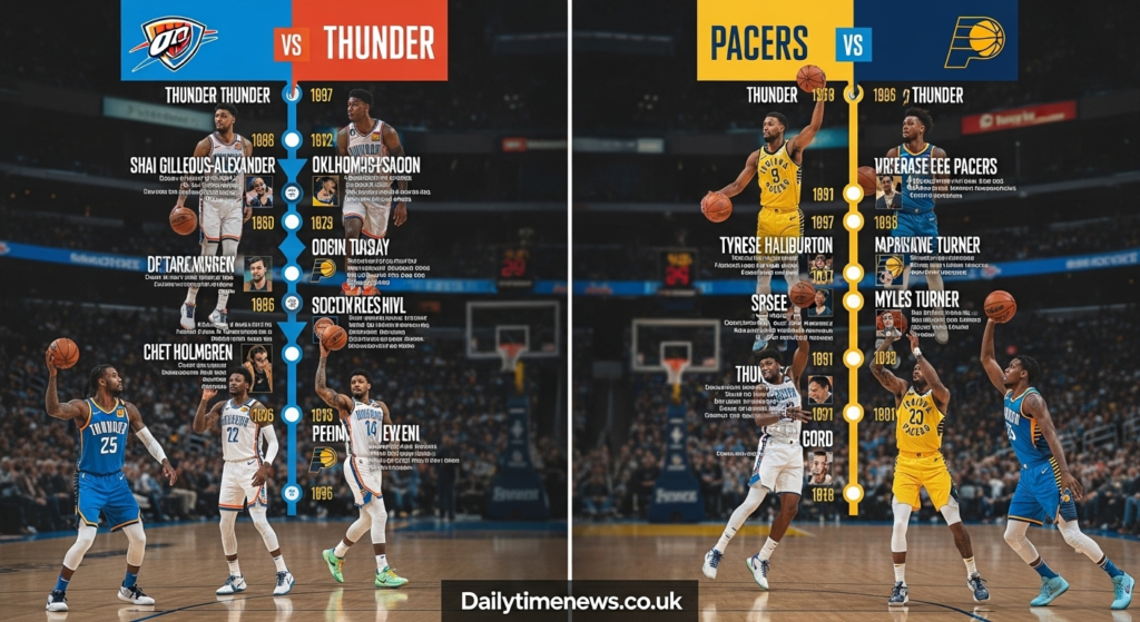 What are the playoff prospects for both teams currently? The Oklahoma City Thunder are considered a rising team with strong playoff potential. Their young core led by Shai Gilgeous-Alexander positions them as potential title contenders within the next few years. The Indiana Pacers consistently compete for playoff spots in the Eastern Conference and aim to advance deeper in the postseason with their current roster construction.