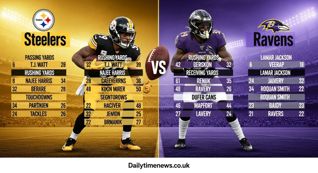 The Steelers vs Baltimore Ravens match player stats tell rich stories about one of football’s best rivalries. Every game produces standout performances, defensive battles, and strategic chess matches between elite coaches.